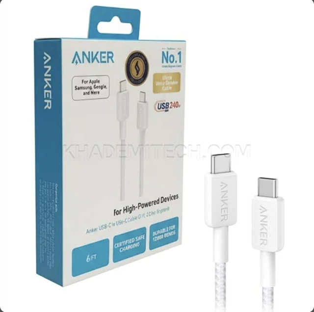 کابل تایپ C انکر با کیفیت ساخت عالی و دوام بالا، انتقال سریع داده و شارژ ایمن را تضمین میکند. طراحی مقاوم و انعطافپذیر این کابل، عمر طولانی و کاربری آسان را فراهم میآورد، مناسب برای انواع دستگاههای مجهز به پورت تایپ C.