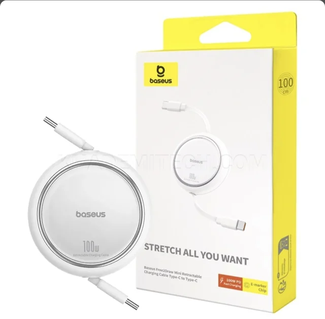 کابل شارژ باسئوس قرقرهای C تایپ 100W با طراحی جمعشونده و توان انتقال برق 100 وات، مناسب برای شارژ سریع و انتقال داده. دارای دوام بالا و قابلیت استفاده آسان، گزینهای ایدهآل برای انواع دستگاههای تایپ C و سفرهای روزمره.