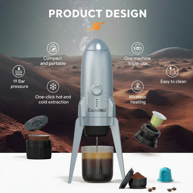 اسپرسو ساز شارژی کاپادلی ME2409 دستگاهی کوچک و قابل حمل برای تهیه قهوه اسپرسو در هر مکان است. با باتری قابل شارژ، طراحی مدرن و کاربری آسان، این محصول انتخابی ایدهآل برای عاشقان قهوه و سفرهای روزمره میباشد. کیفیت بالا و عملکرد مطمئن از ویژگیهای برجسته آن است.