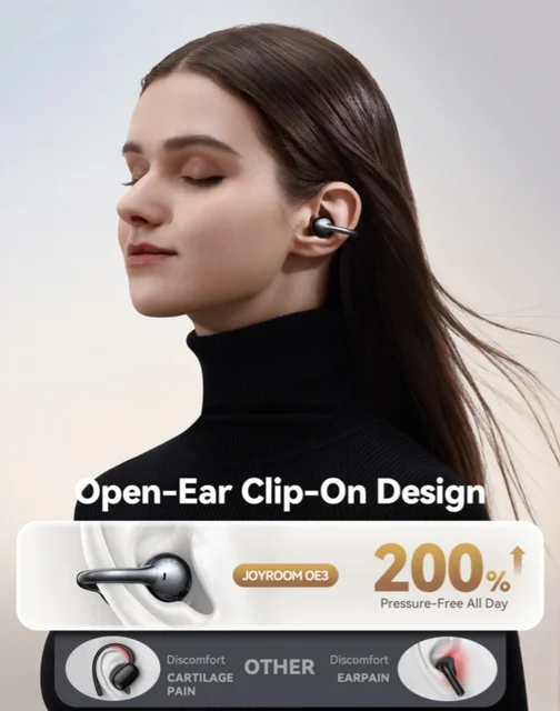 ایرپاد القایی JOYROOM JR-OE3 OPEN EAR با طراحی باز برای راحتی بالا، کیفیت صدای شفاف و اتصال بیسیم پایدار، تجربهای نوین در گوش دادن به موسیقی و مکالمه فراهم میکند. مناسب برای استفاده روزانه با باتری بادوام و کنترل لمسی ساده.