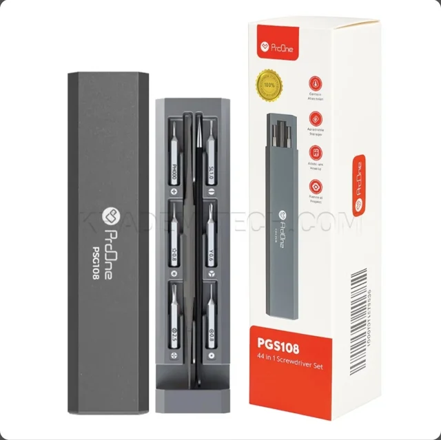 پیچ گوشتی پرووان مدل PROONE PGS108 ابزاری دقیق و با کیفیت برای باز و بسته کردن پیچهای مختلف است. طراحی ارگونومیک دسته آن کاربری آسان و راحت را تضمین میکند و جنس مقاوم نوک پیچ گوشتی طول عمر بالایی دارد. مناسب برای استفاده روزمره در منزل و کارگاه.